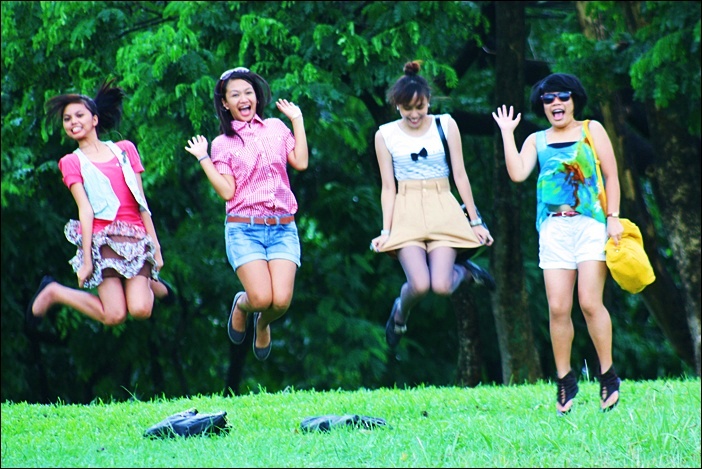 Earlier today, I met up with my high school friends for a much-needed bonding sesh with them in UP. Though the weather was cloudy and rainy, it didn't stop us from having a grand time and a good laugh. The damp grass crunching beneath our feet, the rhythmic thudding of rain on the pavements, the gray cloudy sky and the chilly breeze were all very calming and soothing. Perfect for chasing our school-related anxieties (well for me anyway since classes have resumed for me already) away.